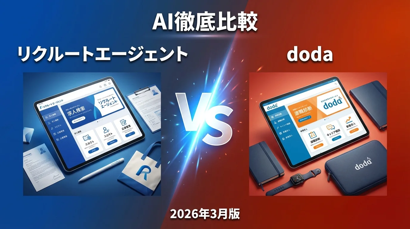 本記事では、転職サービスカテゴリの人気2商品「リクルートエージェント」と「doda」を、3つのAIによる独立評価データに基づいて7つの評価軸で比較しました。